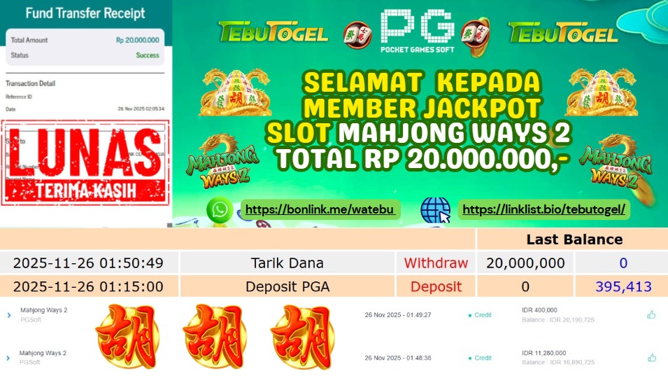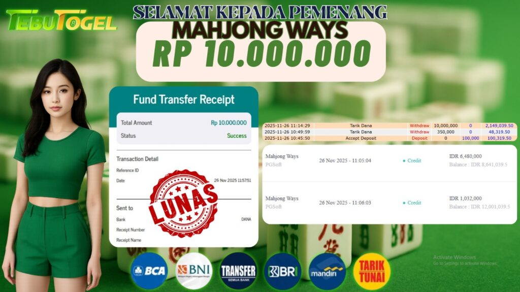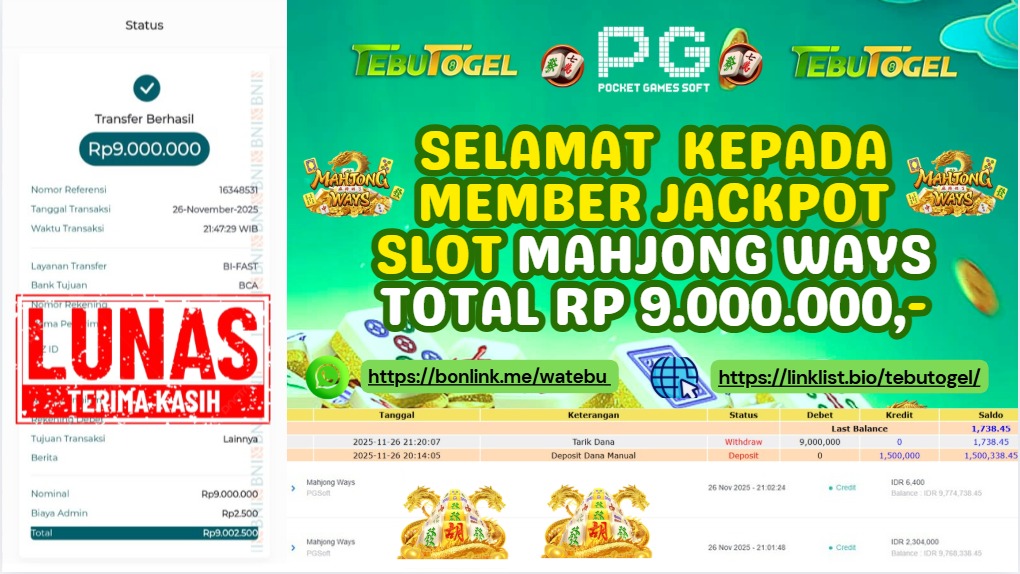 BUKTI JACKPOT SLOT MAHJONG WAYS Rp 9.000.000,- LUNAS