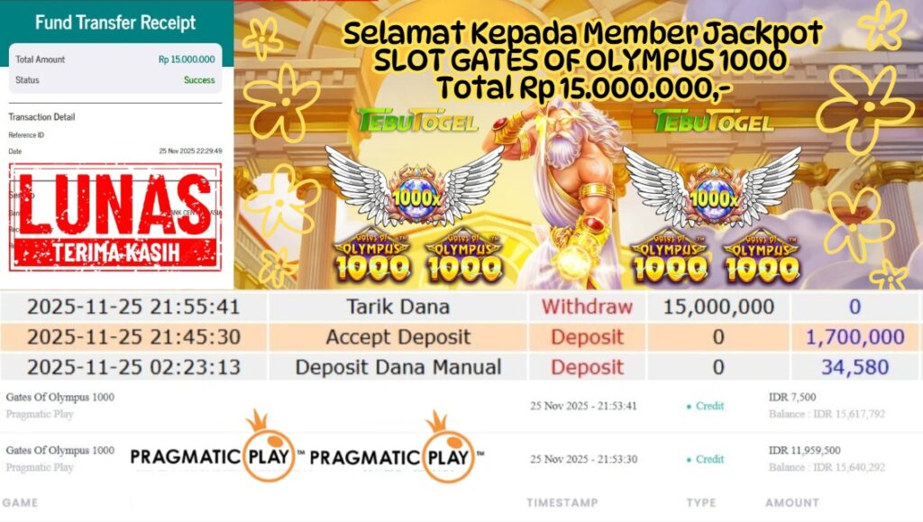 Selamat kepada User id : YOSHI*** telah berhasil mendapatkan kemenangan besar pada permainan SLOT GATES OF OLYMPUS 1000 dengan kemenangan … Baca selengkapnya...