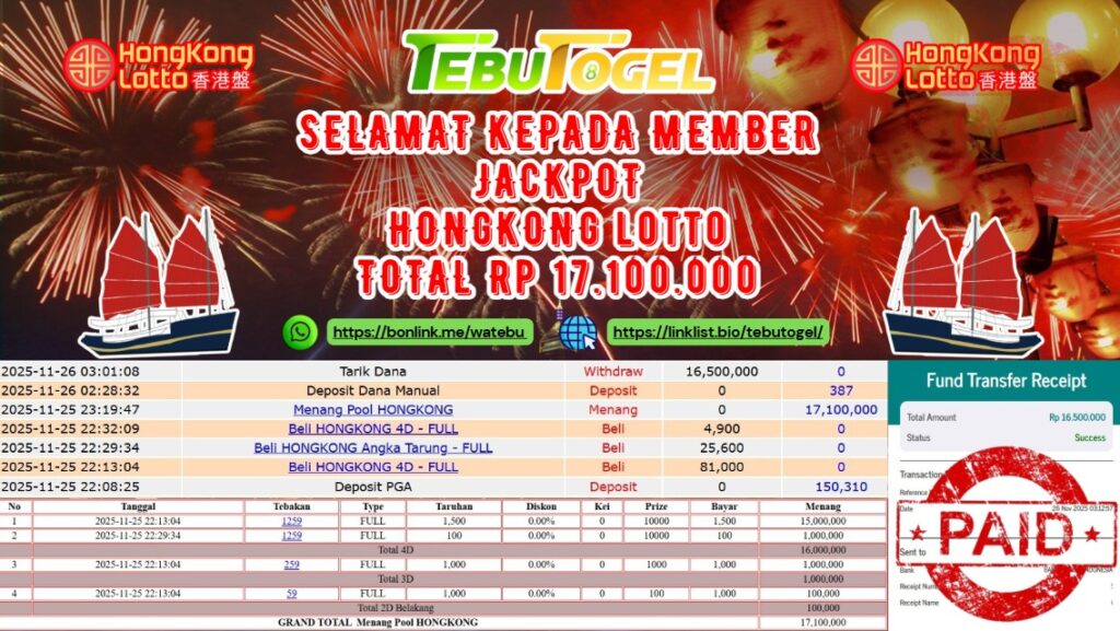 Selamat kepada User id : BABA*** telah berhasil mendapatkan kemenangan besar pada permainan TOGEL HONGKONG LOTTO dengan kemenangan sebesar Rp … Baca selengkapnya...