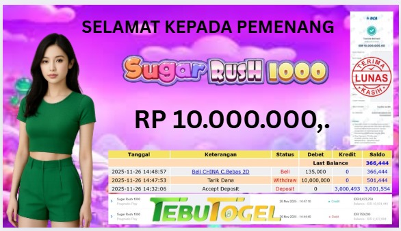Selamat kepada User id : KRETEK*** telah berhasil mendapatkan kemenangan besar pada permainan SLOT SUGAR RUSH 1000 dengan kemenangan sebesar … Baca selengkapnya...