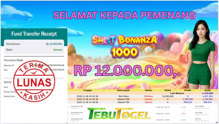 Selamat kepada User id : ROLAS**** telah berhasil mendapatkan kemenangan besar pada permainan SLOT SWEET BONANZA 1000 dengan … Baca selengkapnya...