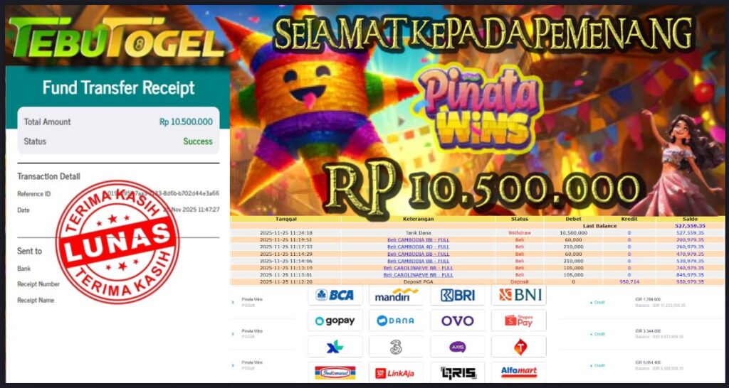 Selamat kepada User id : BYUTS** telah berhasil mendapatkan kemenangan besar pada permainan SLOT PINATA WINS dengan kemenangan sebesar Rp … Baca selengkapnya...