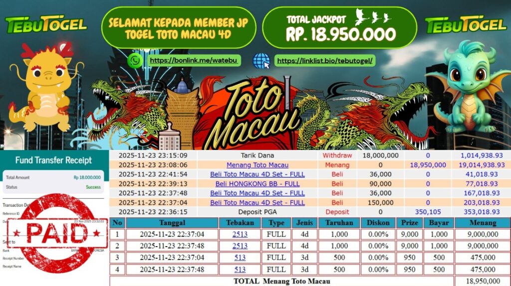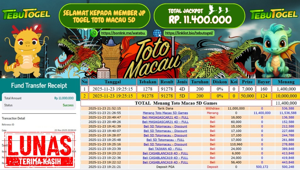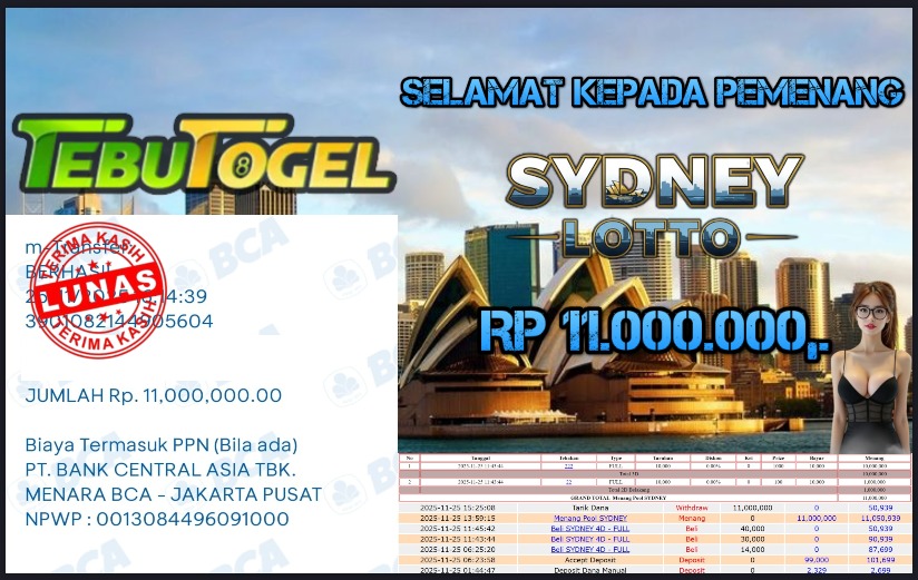 BUKTI JACKPOT TOGEL SYDNEY LOTTO Rp 11.000.000,- LUNAS