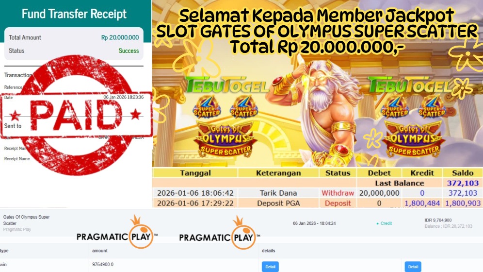 Selamat kepada User id : EGON*** telah berhasil mendapatkan kemenangan besar pada permainan SLOT GATES OF OLYMPUS SUPER SCATTER dengan … Baca selengkapnya...