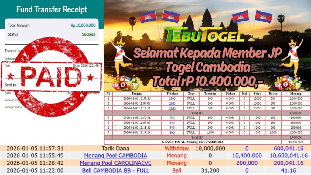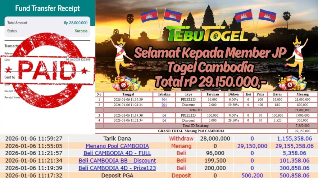 Selamat kepada User id : TERJEBAK** telah berhasil mendapatkan kemenangan besar pada permainan TOGEL CAMBODIA dengan kemenangan sebesar Rp 10.400.000,-… Baca selengkapnya...