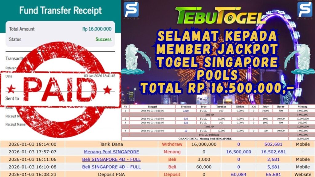 Selamat kepada User id : NOPROBLEM** telah berhasil mendapatkan kemenangan besar pada permainan TOGEL SINGAPORE POOLS dengan kemenangan sebesar Rp … Baca selengkapnya...