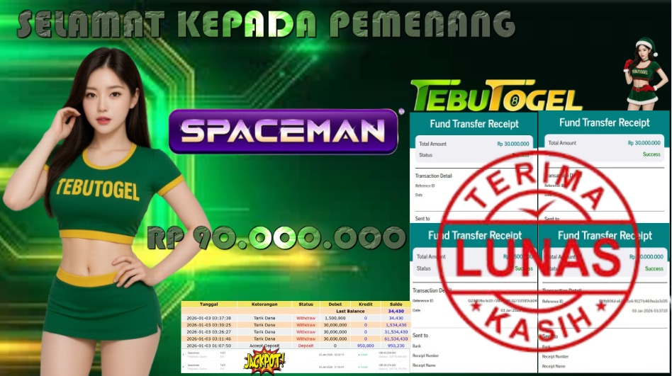 Selamat kepada User id : SANJI*** telah berhasil mendapatkan kemenangan besar pada permainan SLOT SPACEMAN dengan kemenangan sebesar Rp 90.000.000,-… Baca selengkapnya...