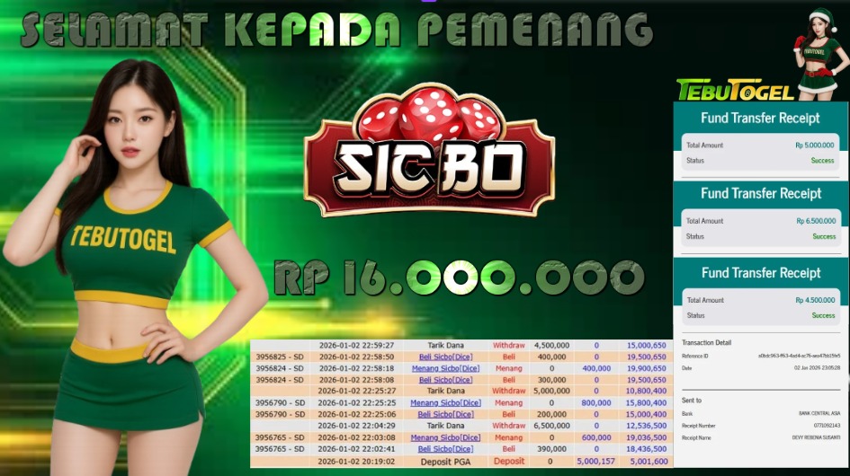 Selamat kepada User id : JURAGAN69** telah berhasil mendapatkan kemenangan besar pada permainan LIVE GAME SICBO DICE dengan kemenangan sebesar … Baca selengkapnya...