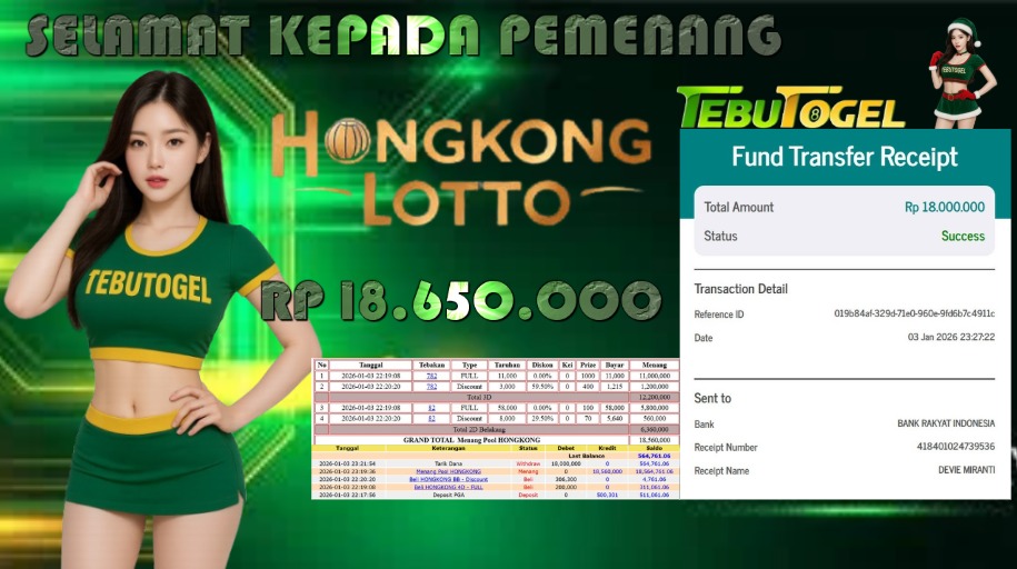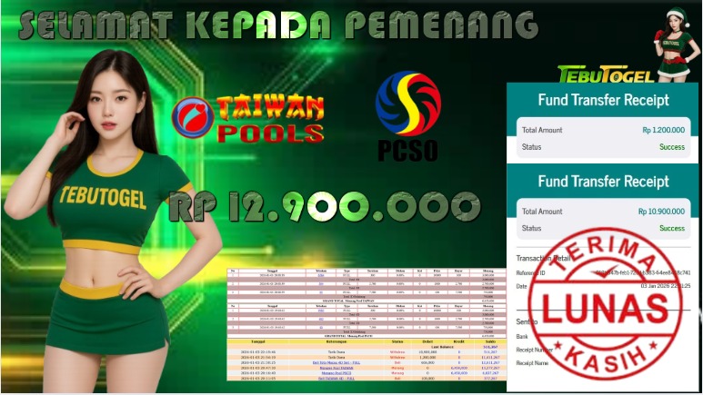 Selamat kepada User id : LODLOD**** telah berhasil mendapatkan kemenangan besar pada permainan BUKTI JACKPOT TOGEL BERUNTUN TAIWAN … Baca selengkapnya...