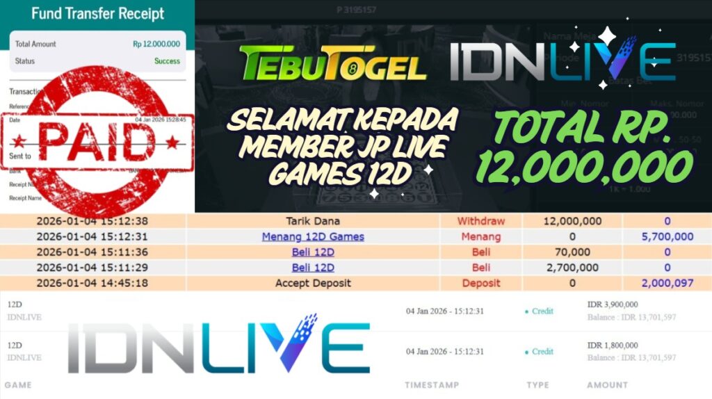 Selamat kepada User id : BUYUNG**** telah berhasil mendapatkan kemenangan besar pada permainan LIVE GAME 12D dengan kemenangan sebesar Rp … Baca selengkapnya...