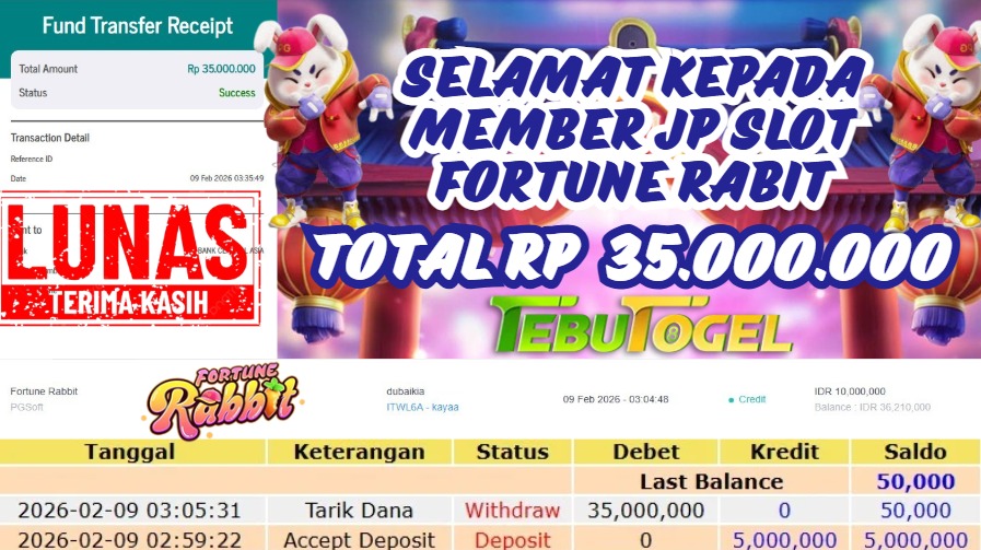 Selamat kepada User id : SILKA** telah berhasil mendapatkan kemenangan besar pada permainan SLOT FORTUNE RABIT dengan kemenangan sebesar … Baca selengkapnya...