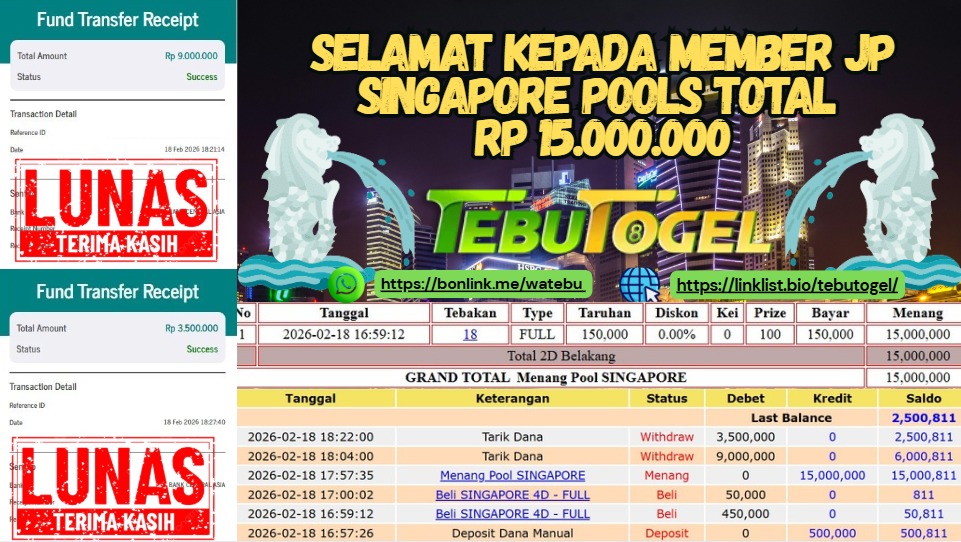 Masih ragu dengan TebuTogel bos ? Dimana bandar togel online sekarang yang terpercaya seperti TebuTogel ? Bandar yang mengirimkan kemenangan member tanpa bertele – tele. Jadi…. tidak perlu khawatir pada situs TebuTogel karena kemenangan anda berapapun akan dibayarkan hingga lunas kepada pemenang.