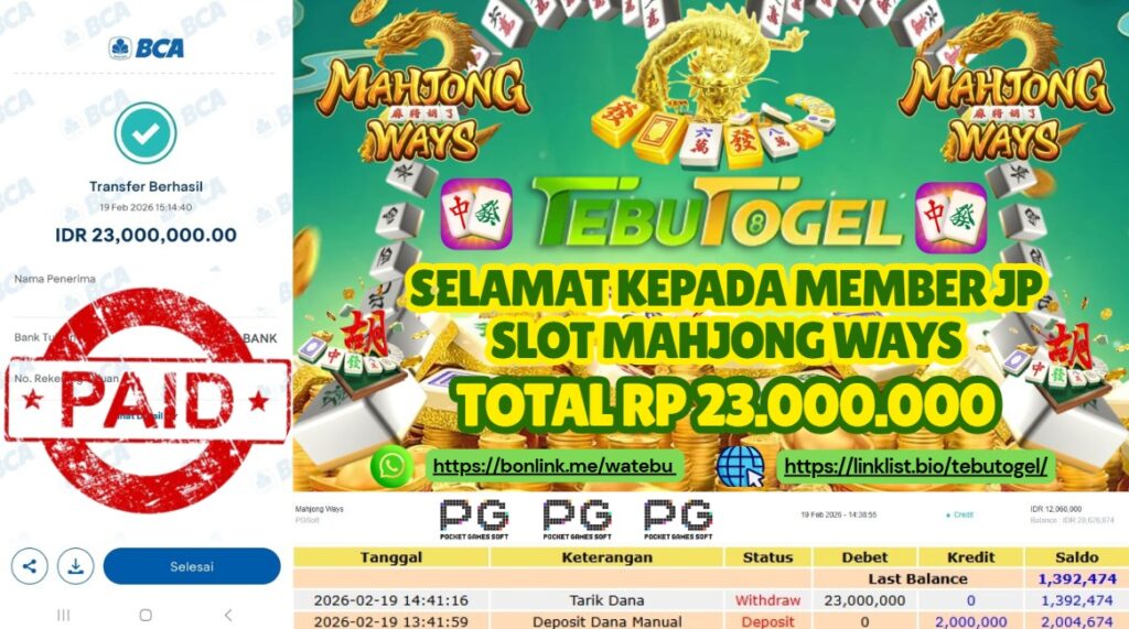 BUKTI JACKPOT SLOT MAHJONG WAYS Rp 23.000.000,- LUNAS