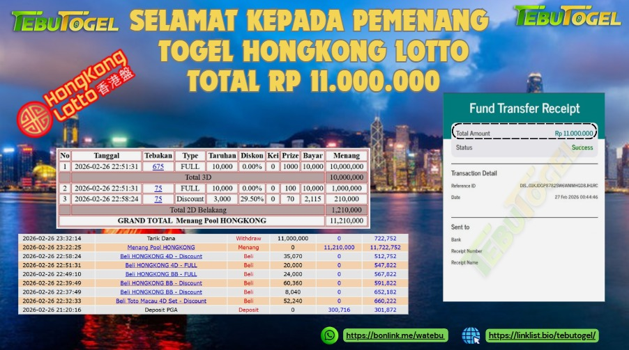 BUKTI JACKPOT TOGEL PCSO Rp 11.000.000,- LUNAS
