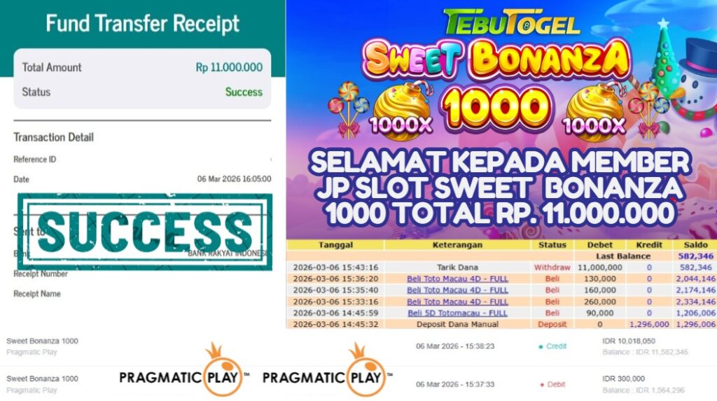 Selamat kepada User id : LEPK** telah berhasil mendapatkan kemenangan besar pada permainan SLOT SWEET BONANZA 1000 dengan kemenangan sebesar Rp 11.000.000,- Setelah mengisi formulir withdraw dengan kurung waktu hanya 5 – 10 menit pihak TebuTogel sudah melakukan transfer kepada pemilik User id dan dana sudah dapat dicairkan oleh pemenang. Bukti pembayaran yang kami berikan merupakan bukti pembayaran yang SAH / VALID yang langung didapatkan melalui tanda transfer transaksi dari Bank yang dituju.