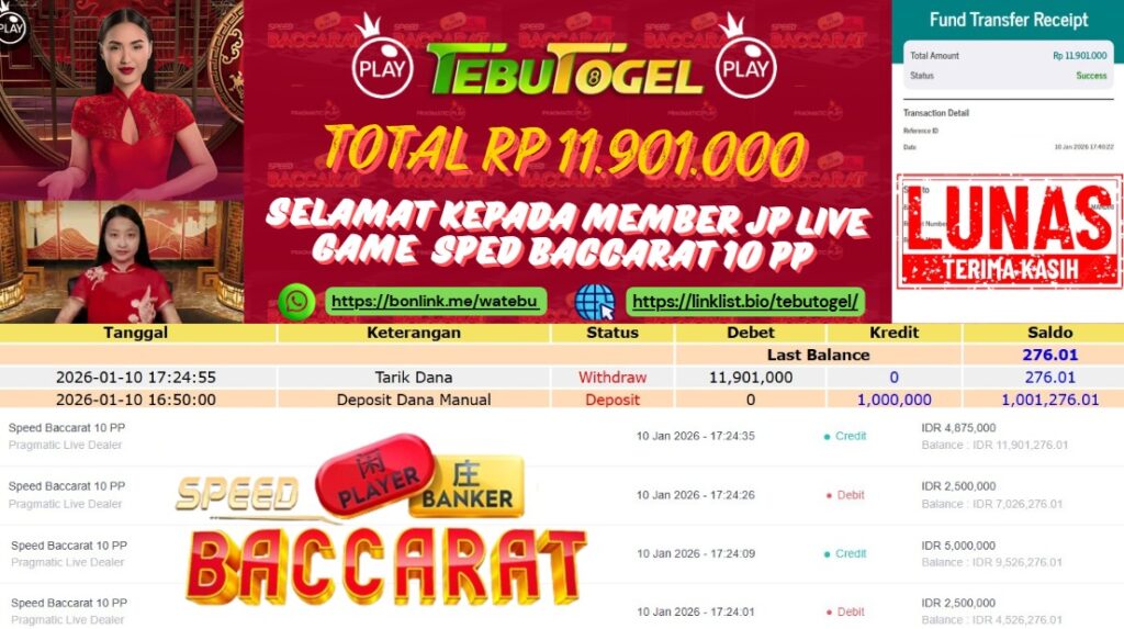Selamat kepada User id : ZOZA** telah berhasil mendapatkan kemenangan besar pada permainan LIVE GAME SPEED BACCARAT 10 PP dengan … Baca selengkapnya...