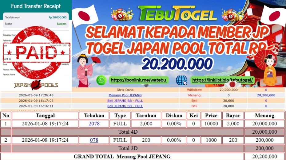 Selamat kepada User id : KIMKIM**** telah berhasil mendapatkan kemenangan besar pada permainan TOGEL JAPAN POOLS dengan kemenangan sebesar … Baca selengkapnya...