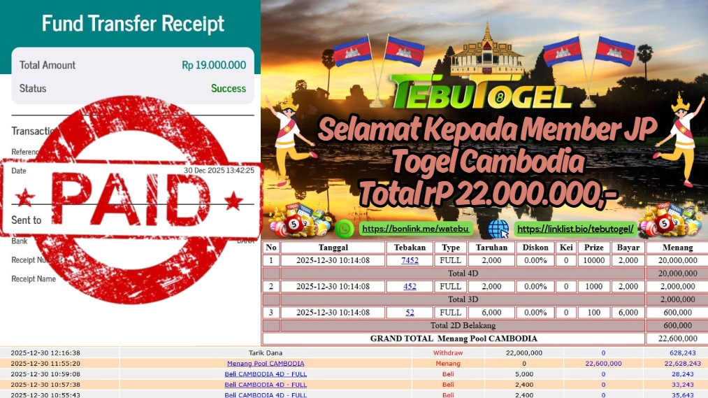 Selamat kepada User id : SUSAN**** telah berhasil mendapatkan kemenangan besar pada permainan TOGEL CAMBODIA dengan kemenangan sebesar Rp 22.000.000,-… Baca selengkapnya...