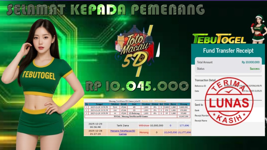 Selamat kepada User id : BELACIS**** telah berhasil mendapatkan kemenangan besar pada permainan TOGEL OREGON 6 dengan kemenangan sebesar Rp … Baca selengkapnya...