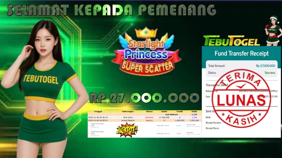 BUKTI JACKPOT SLOT STARLIGHT PRINCESS Rp 27.000.000,- LUNAS