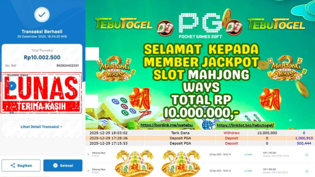 Selamat kepada User id : MIKA*** telah berhasil mendapatkan kemenangan besar pada permainan SLOT MAHJONG WAYS dengan kemenangan sebesar Rp … Baca selengkapnya...