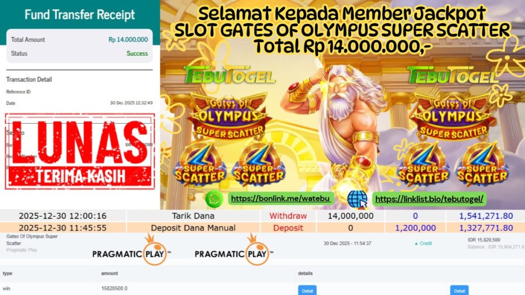 Selamat kepada User id : WENDA**** telah berhasil mendapatkan kemenangan besar pada permainan SLOT GATES OF OLYMPUS SUPER SCATTER dengan … Baca selengkapnya...