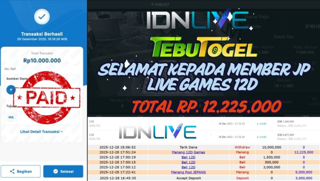 Selamat kepada User id : NICE** telah berhasil mendapatkan kemenangan besar pada permainan LIVE GAME 12D dengan kemenangan sebesar Rp … Baca selengkapnya...