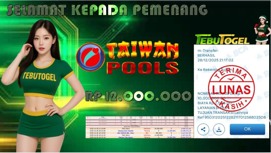 Selamat kepada User id : BUTRAS**** telah berhasil mendapatkan kemenangan besar pada permainan TOGEL TAIWAN dengan kemenangan sebesar … Baca selengkapnya...