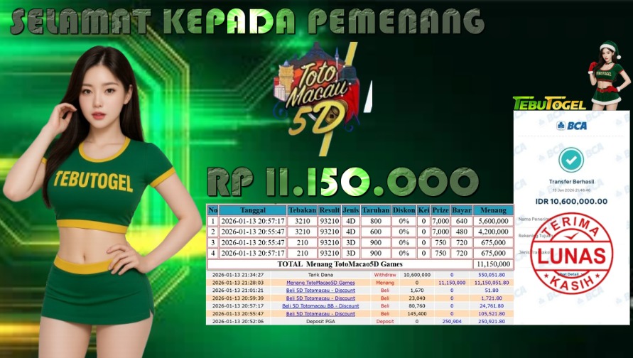 Selamat kepada User id : BONAR**** telah berhasil mendapatkan kemenangan besar pada permainan TOGEL TOTO MACAU 5D dengan kemenangan sebesar … Baca selengkapnya...