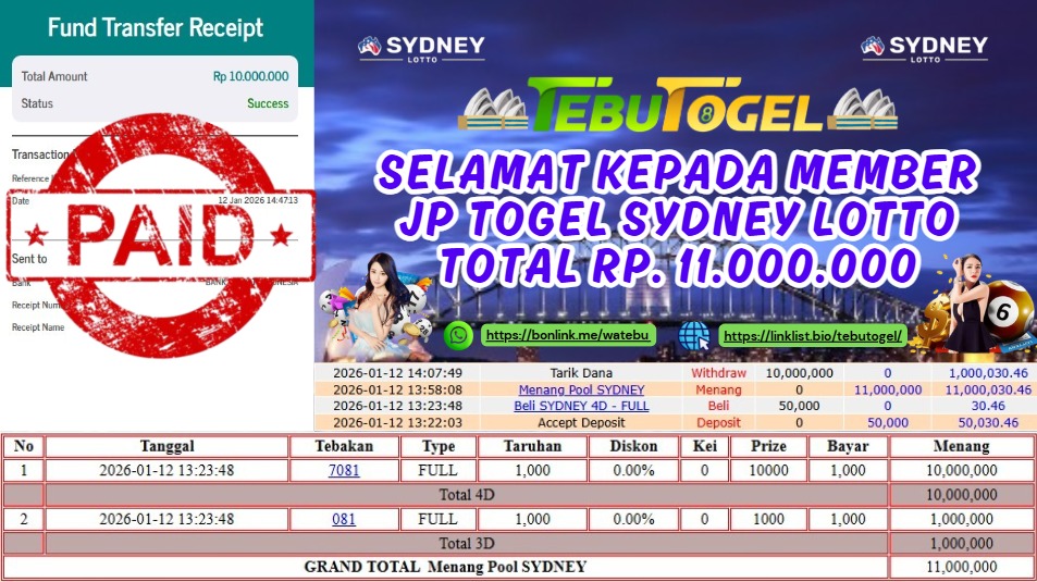 Selamat kepada User id : RICH** telah berhasil mendapatkan kemenangan besar pada permainan TOGEL SYDNEY LOTTO dengan kemenangan sebesar Rp … Baca selengkapnya...